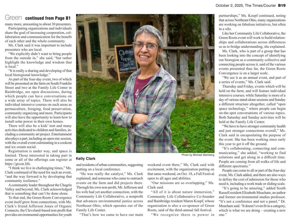 THank you to reporter Sue (Reid) Pinkerton, photographer Michael Steinberg, and the Chagrin Valley Times for such a nice article on the Green Roots Convergence